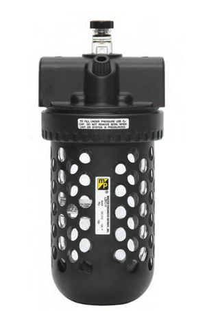 High-strength polycarbonate plastic filter bowl with steel shatterguard; optional metal bowl with clear nylon sight glass