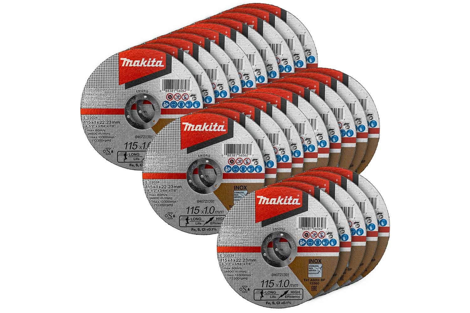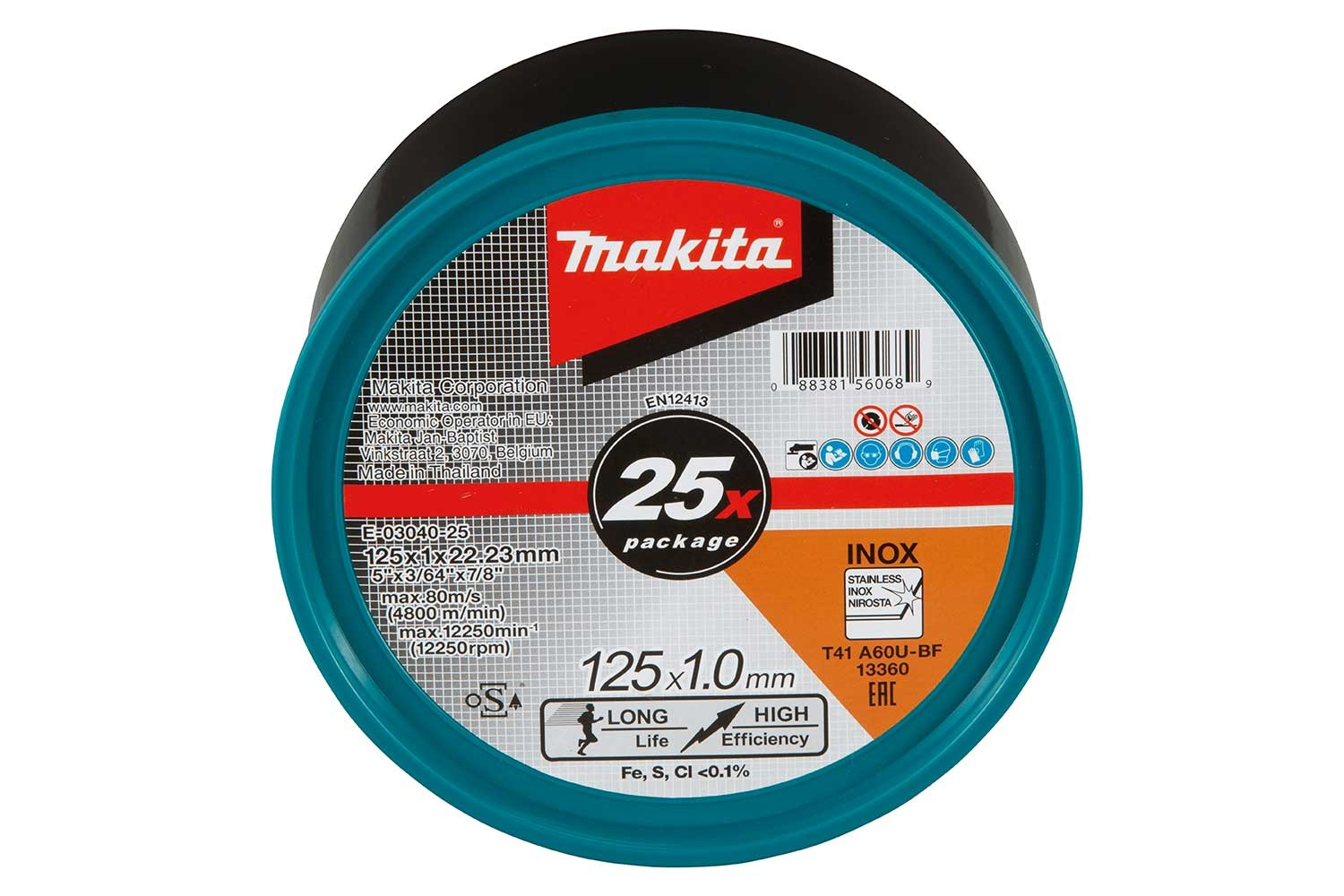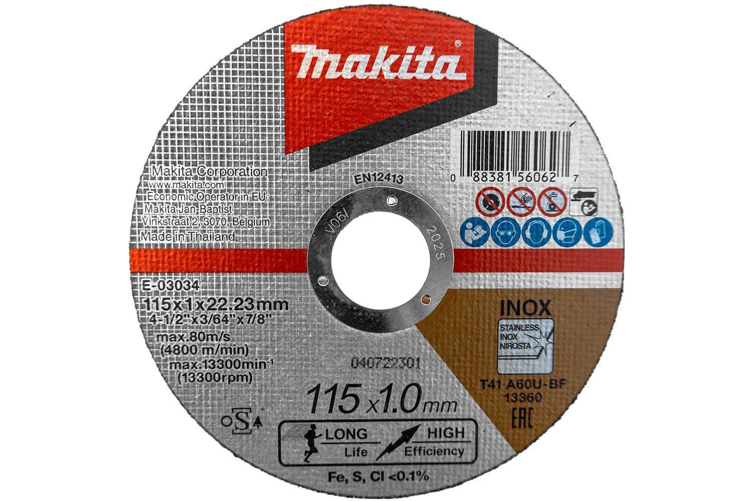 Makita has a deep line-up of metalworking solutions. Get the right accessory for grinding applications with Makita INOX cut-off wheels. Made for general cutting work on stainless steel, ferrous metals and non ferrous metals, and has an innovative design produces less noise and vibration for an improve user experience and increased efficiency. The high strength bonding agent and high-quality reinforcement provide improved efficiency and durability. EN12413 / TS A60U-BF. Type 41 flat disc.