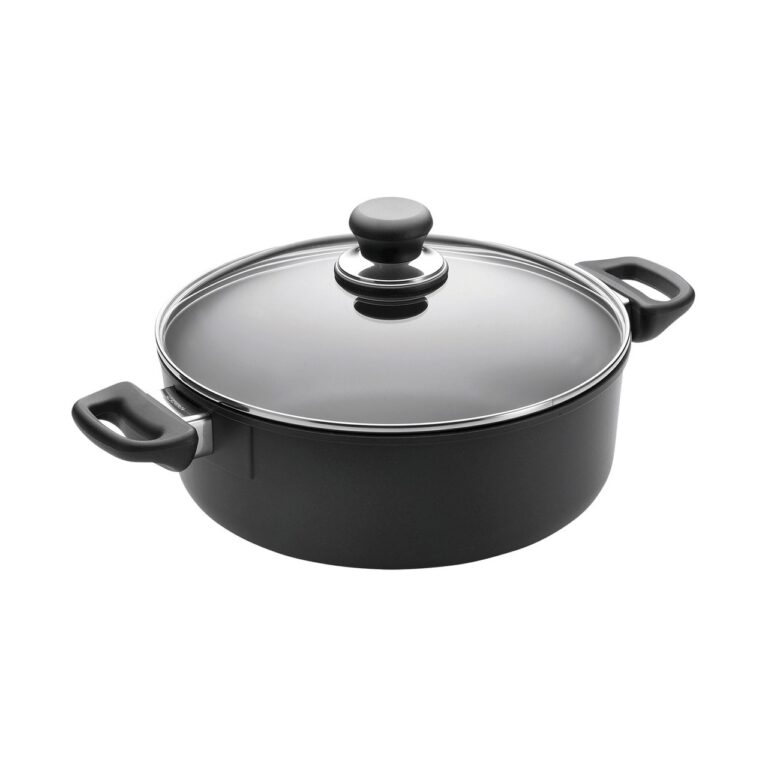 The SCANPAN Classic 26cm/4 Litre Low Dutch Oven is a perfect piece for a variety of meals. This low dutch oven has SCANPAN’s STRATANIUM non-stick coating non-stick surface and is designed and made in Denmark from environmentally friendly, recycled aluminium. SCANPAN Classic cookware is oven safe to 250°C with even heat distribution and unsurpassed durability. The handle is fixed to the body of the pan using a patented system without rivets, screws or springs.