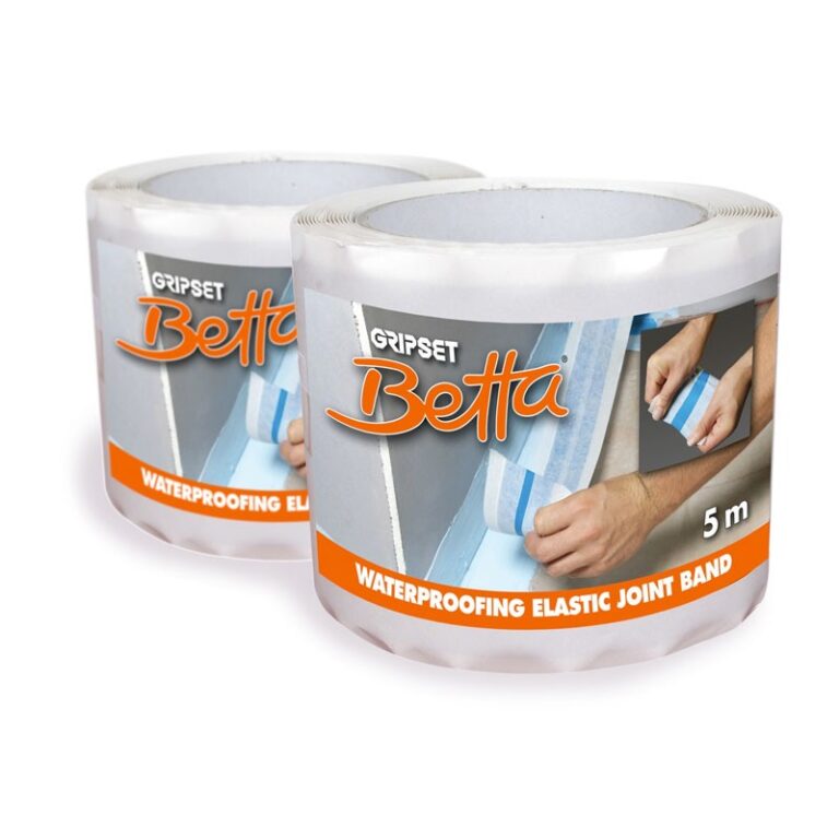 Gripset Betta Elastic Joint Band is a waterproof sealing band that is used at wall/floor junctions to protect the most critical area of the waterproofing application. Consisting of a unique grade of rubber, the Elastic Joint Band provides a rupture resistant seal that accommodates expected movement between the abutments of different surfaces. Also performs as the bond breaker for the waterproofing system.