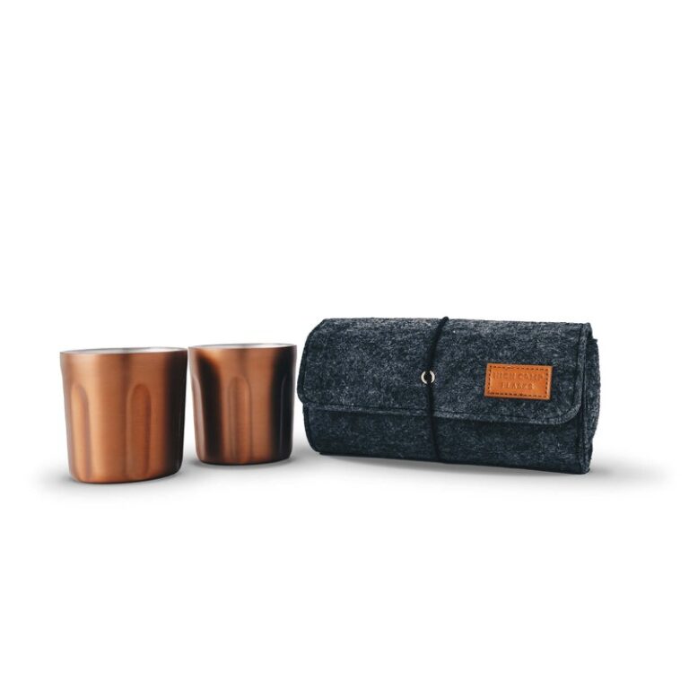 The High Camp Firelight 2-Pack Tumbler is built using premium grade stainless steel with a laser smooth interior and they include a felt carrying case for travel. Great for gifting.