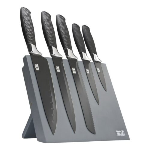 5 Piece Soft Grip Non Stick Kitchen Knife & Magnetic Knife Block Set