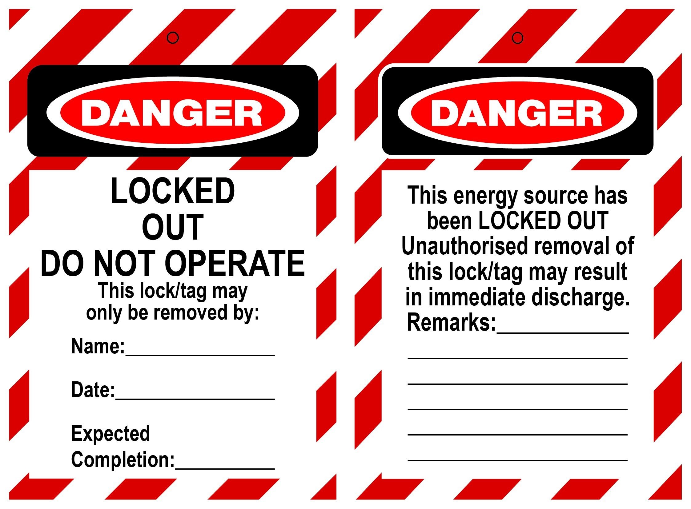 Weather-proof, tear-proof tags, for durable, clear lockout warning.