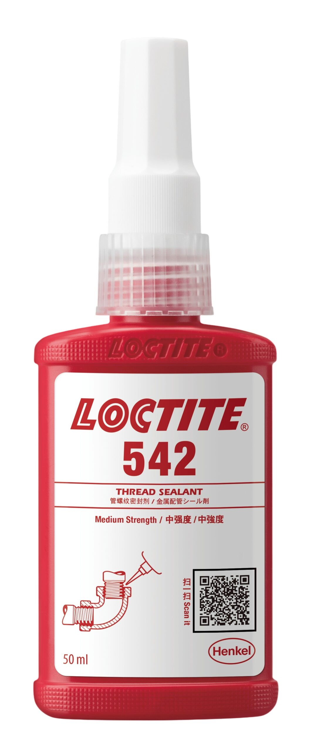 LOCTITE 542 is designed for the locking and sealing of metal pipes and fittings as well as other cylindrical metal assemblies. The product cures when confined in the absence of air between close-fitting metal surfaces and prevents loosening and leakage due to shock and vibration.