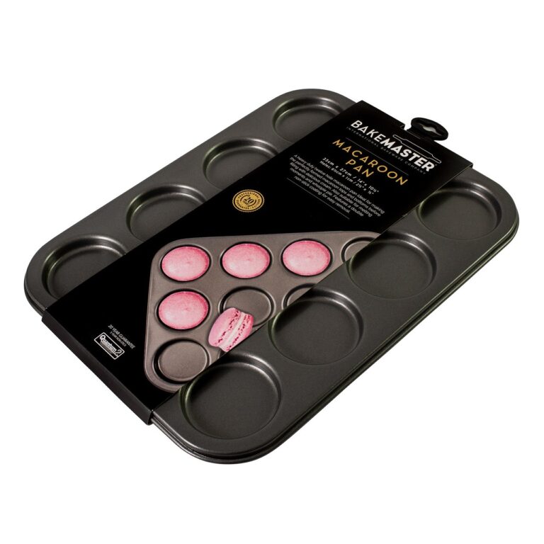 A heavy duty twelve hole macaroon pan ideal for making the perfectly formed macaroon tops and bottoms before filling with delicious cream. Also suitable for melting moments and whoopie pie. Features a double non-stick coating for easy removal.