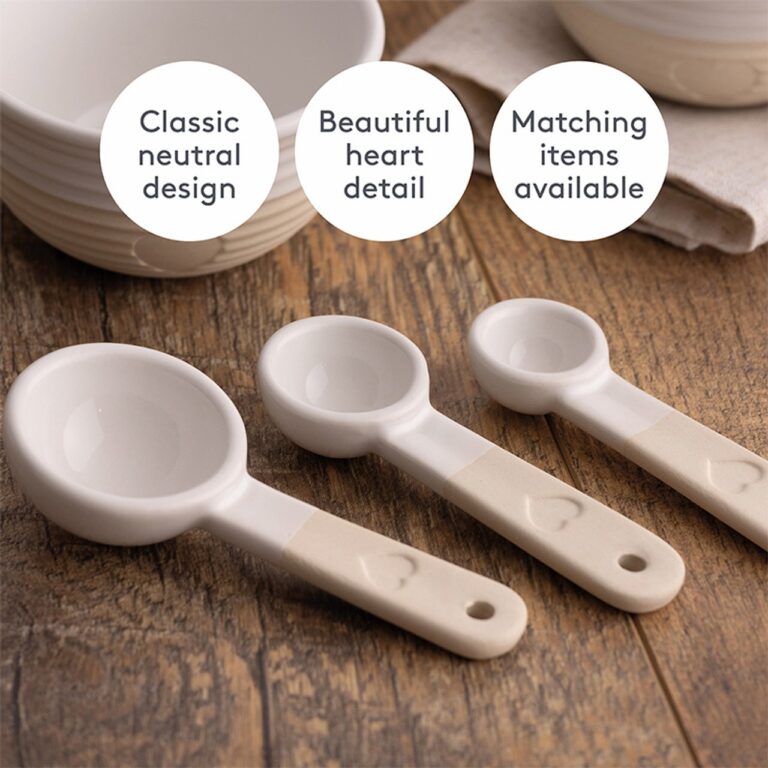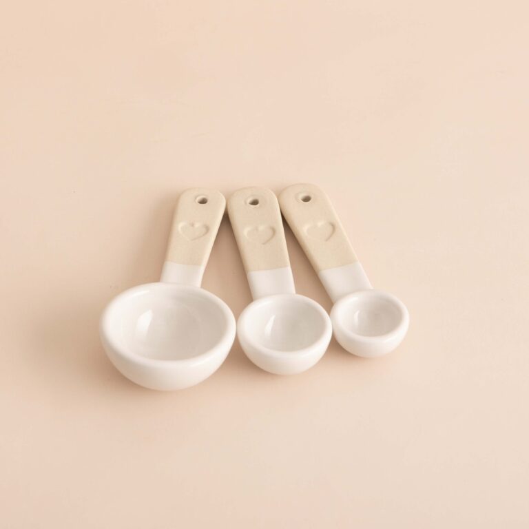 The three piece Measuring Spoon set is made from stoneware. The spoons measure 1 tablespoon, 1 teaspoon, ½ teaspoon and ¼ teaspoon. The beautiful design is a stylish addition to the kitchen.