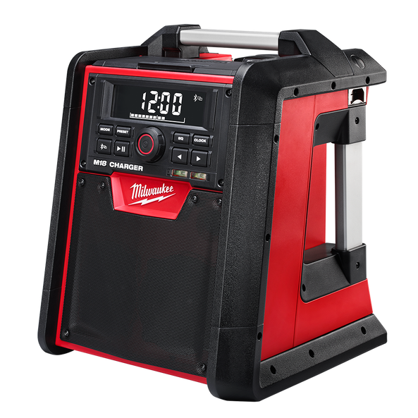 The MILWAUKEE M18 Jobsite Radio/Charger is the first charging radio to bring the power of Bluetooth to the jobsite, while delivering the industry’s best reception and sound. The most advanced radio of its kind, the M18 Jobsite Radio/Charger features a Bluetooth receiver so you can stream rich, full sound wirelessly from over 30m. It’s unique battery charger allows you to charge any M18 battery without sacrificing reception or sound quality. For added versatility, a high-power USB port allows you to charge most portable electronic devices. The M18 Radio/Charger’s lightweight, high-strength design includes a reinforced roll cage for protection from weather and abusive jobsite conditions. The radio/charger also offers the industry’s largest on-board, weather-sealed storage compartment to protect your small belongings and smart phones. A 406mm auxiliary input cord and 2 x AAA batteries are included.