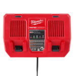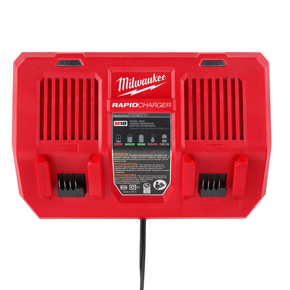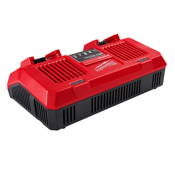 The M18™ Dual Bay Simultaneous Rapid Charger is capable of charging two batteries at once, and faster than standard sequential chargers. The charger accepts all MILWAUKEE® M18™ batteries. This compact battery charger is equipped with REDLINK™ Intelligence that communicates directly with M18™ batteries to monitor cell voltage, temperature and charge status to deliver the best combination of charge duration and pack lifespan. Charging batteries simultaneously at a rapid charge rate reduces downtime and maximises productivity. Its compact size makes this an ideal charger to carry on and off the job, hang in a work trailer, or charge on the top shelf of a job box. The M18™ Dual Bay Simultaneous Rapid Charger is perfect for professionals who charge and swap multiple battery packs throughout the day.
