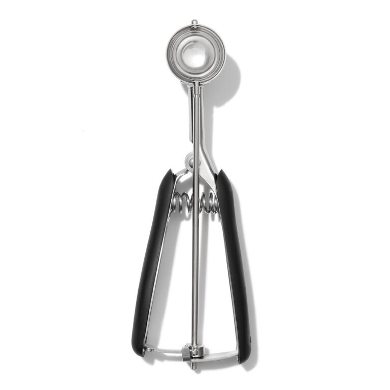 Improve your cookie baking with the OXO Good Grips Medium Cookie Scoop. This size 4 portioner holds 1.5 tablespoons of cookie dough or batter to make uniform cookies every time. It’s ideal for making standard, 7cm diameter cookies that are just right for dunking in a glass of milk, donating to a bake sale or serving on a holiday party platter. The stainless steel scoop cuts cleanly through soft and tough cookie dough alike. One squeeze of the spring-loaded handle ejects even the stickiest dough as the wiper makes sure every bit lands on your cookie sheet. Comfortable, non-slip grips allow you to make large batches of cookies without breaking a sweat. When you’re done, it’s dishwasher safe for easy cleanup.