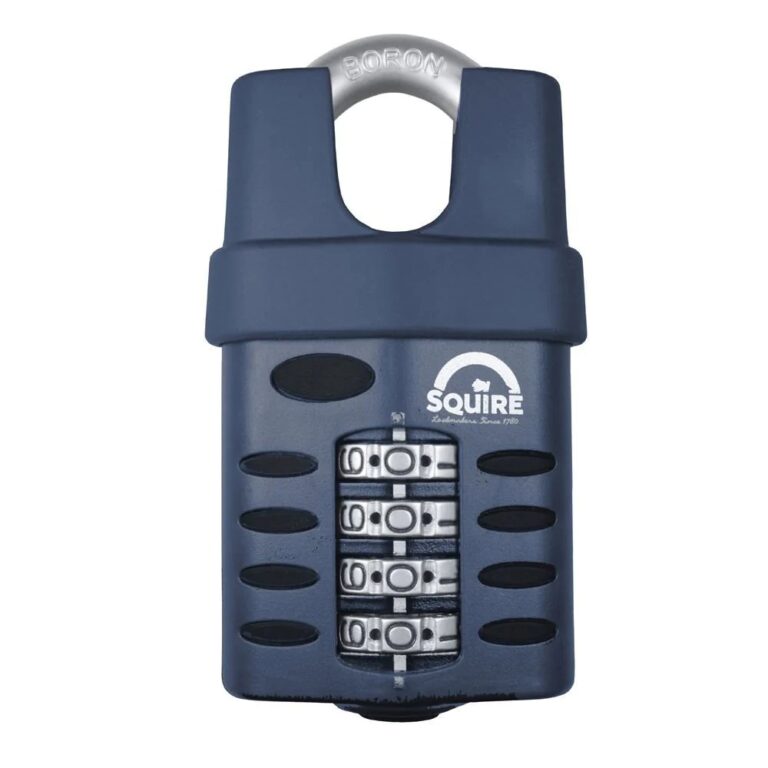 Squire 50mm closed shackle die cast alloy body padlock, recodable combination 4 wheel with 10,000 possible combinations, stainless steel shackle, double locking mechanism, 6mm shackle diameter, vertical shackle clearance 22mm, horizontal clearance 16mm. Ideal for gates, sheds, doors, tool boxes etc.