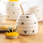Made from quality ceramic, the honey pot is decorated with cute flying bumble bees and includes a wooden drizzler.