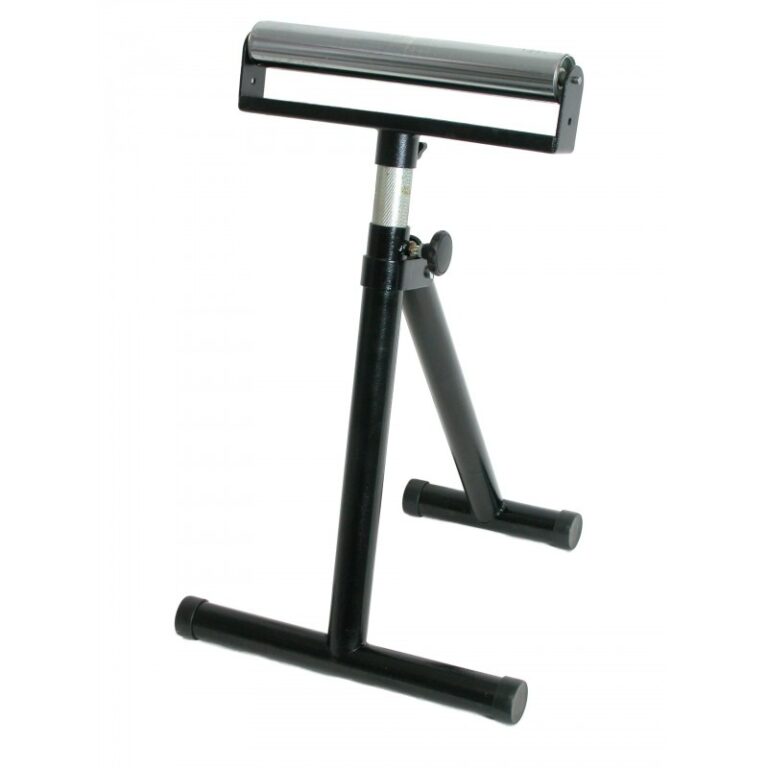 Compact and adjustable roller stand provides support for long work pieces. Sturdy construction.