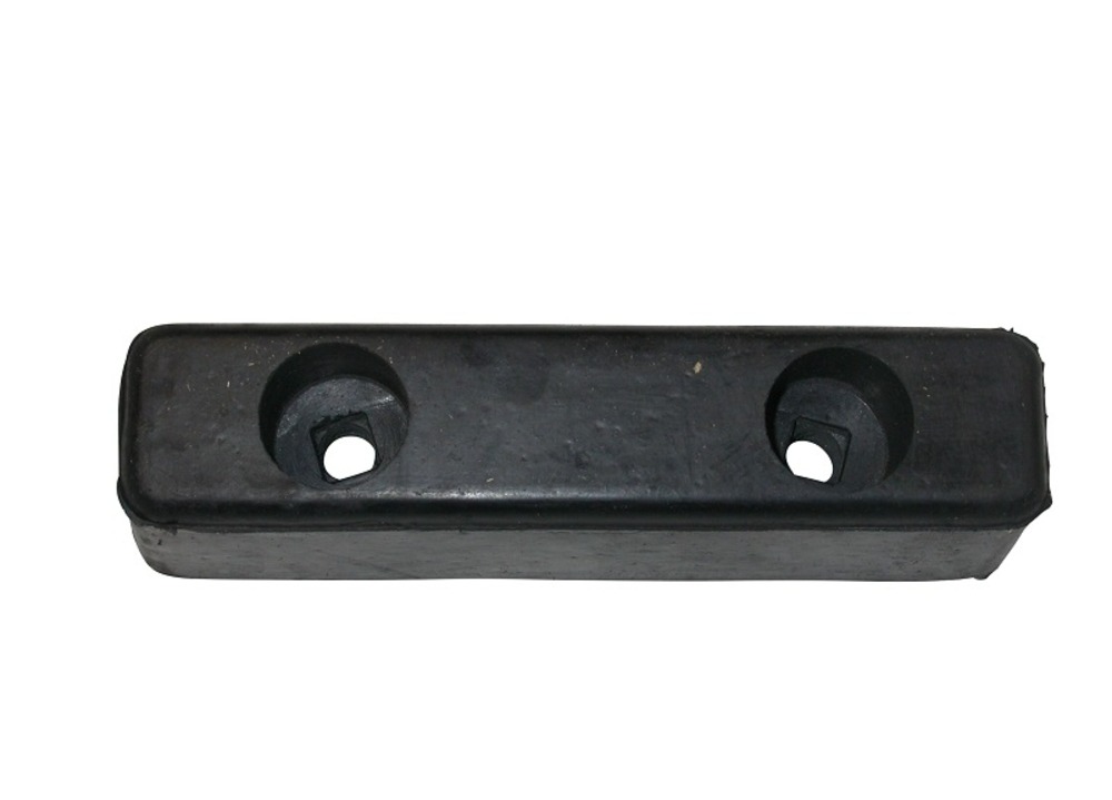 Black synthetic rubber truck or van buffer. Size 200mmL x 50mmH x 50mm W. Hole centres 98mm. 2 x 12mm counter sunk fixing points.
