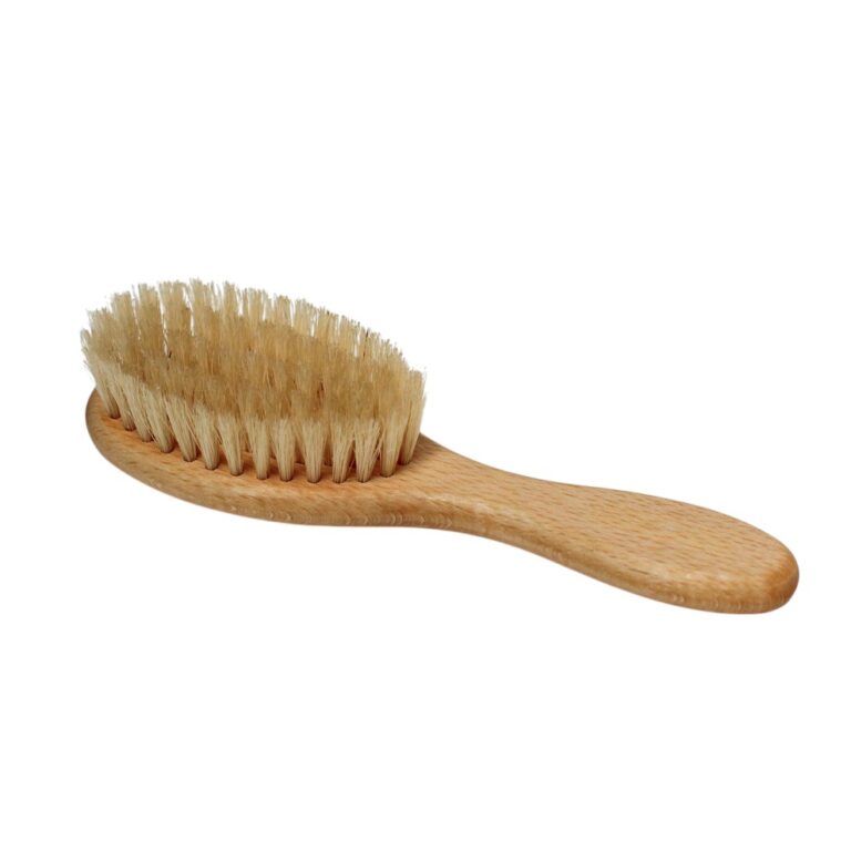 Hand crafted in Germany with FSC certified oiled beech wood with natural bristles, the brush is ideal for little sensitive scalps.