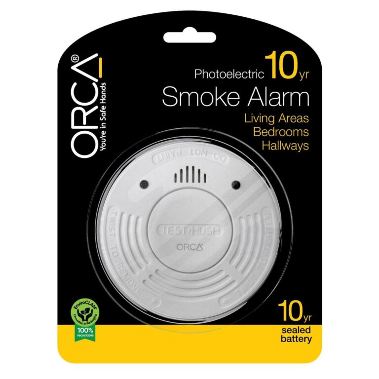 ORCA photoelectric smoke alarms provide effective detection for slow smouldering fires as well as fast flaming fires, giving you and your family an early warning and plenty of time to respond. Photoelectric smoke alarms also significantly reduce nuisance alarms caused by cooking. The built-in 3 volt lithium battery does not need to be replaced during the 10 year lifespan of this smoke alarm. Ideal for living areas, bedrooms, hallways and open plan kitchens.