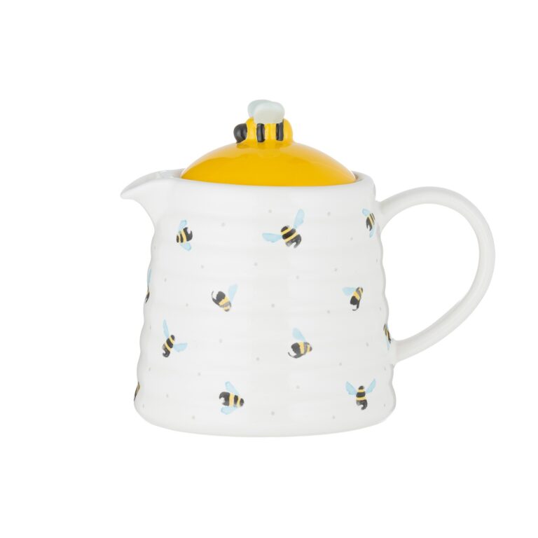 The Price & Kensington Sweet Bee 4-Cup Teapot is made from durable stoneware and boasts a moulded bee hive ribbed effect.