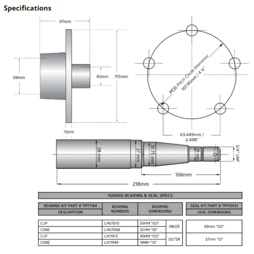 Material for Stub Axles: 1045 medium tensile steel to AS1442 standard.
