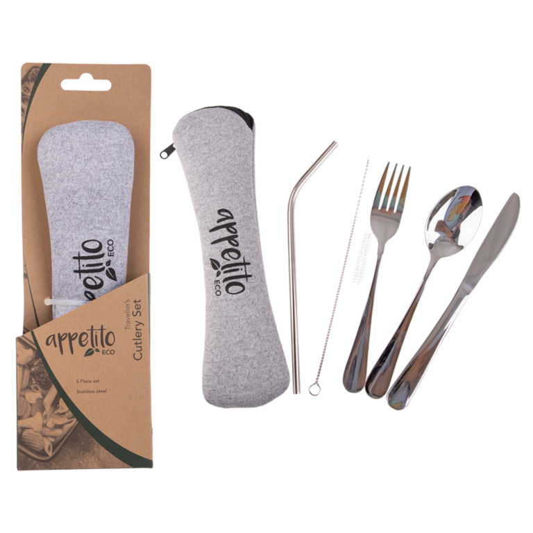 Be eco-conscious and sustainable by replacing plastic cutlery with the 5 Piece Traveller’s Cutlery Set from Appetito, perfect for when on-the-go.