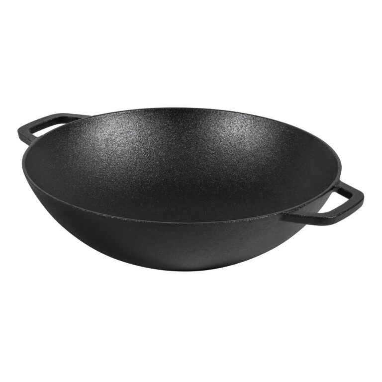 This PYROCAST 37cm Wok is perfect for stir-frying, steaming and deep frying. Pre-seasoned, it will cook with even heat and with easy food release.The twin handles ensure balance and safety, making it easy to carry from the cooktop to the table. This heavy duty, cast iron, curved pan is a generous size for cooking family meals. Durable and long lasting, whether you use it on your cooktop or the campfire.